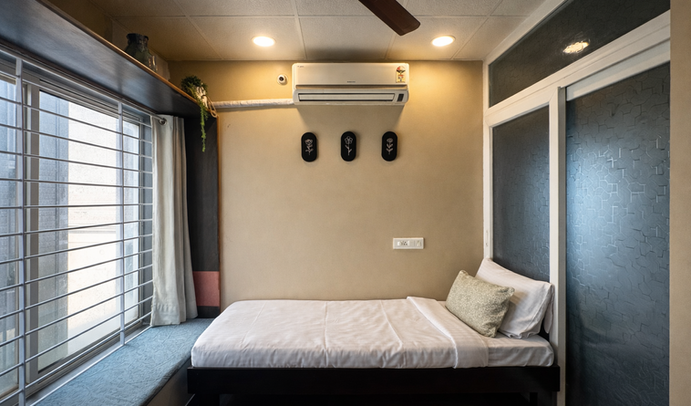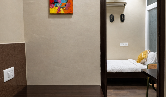 Nestled in BTM Layout, Bangalore, Little Bean offers a peaceful retreat with intimate, coffee- inspired interiors. Ideal for professionals, couples, small families, or friends, our two comfortable rooms are connected by a shared hallway with a cozy seating area and a convenient pantry.